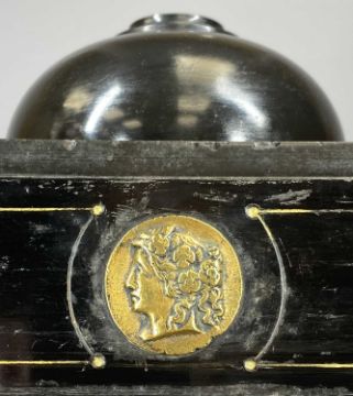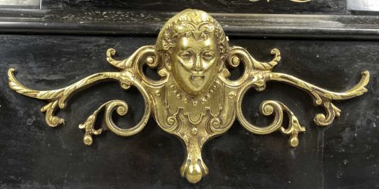 LARGE FRENCH BLACK SLATE MANTEL CLOCK, case with gilded line inlay and cast brass embellishments, 50 (h) x 49 (w) x 16cms (d)Provenance: private collection Conwy