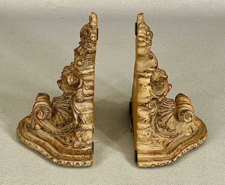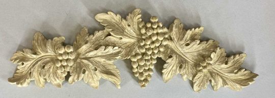 ASSORTED COLLECTABLES, comprising Adam Lockyer natural wood vase, 17cms (h); pair of Rococo form wall brackets, 17cms (h); and stained carved wood panel, grapes and vine leaf, 82cms (w)Provenance: private collection Conwy