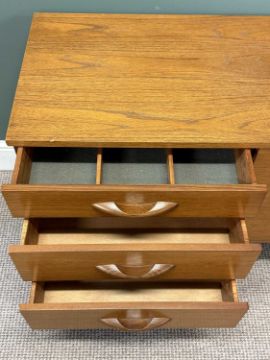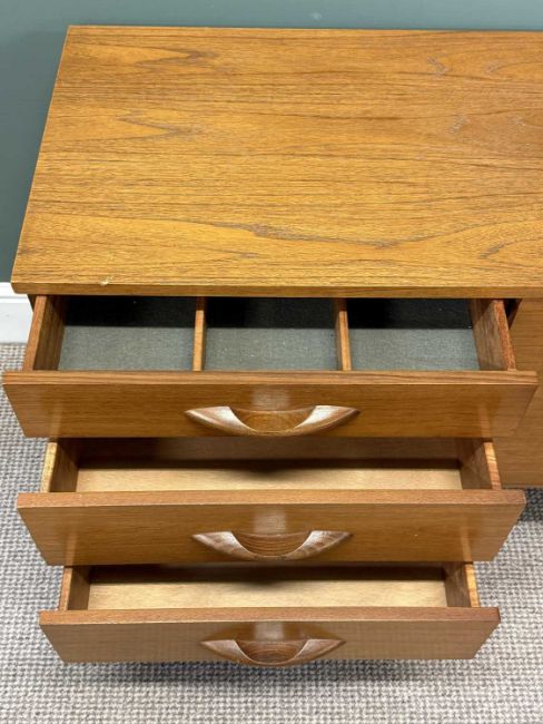TEAK MID-CENTURY LONG JOHN SIDEBOARD, three drawers to the side of triple cupboards, 73 (h) x 184 (w) x 44cms (d)Provenance: private collection Gwynedd