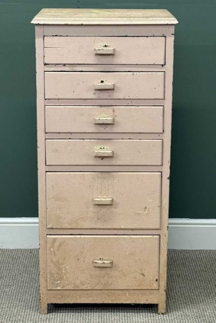 PAINTED TALL CHEST OF SIX DRAWERS, 121 (h) x 55 (w) x 45cms (d)Provenance: deceased estate Conwy