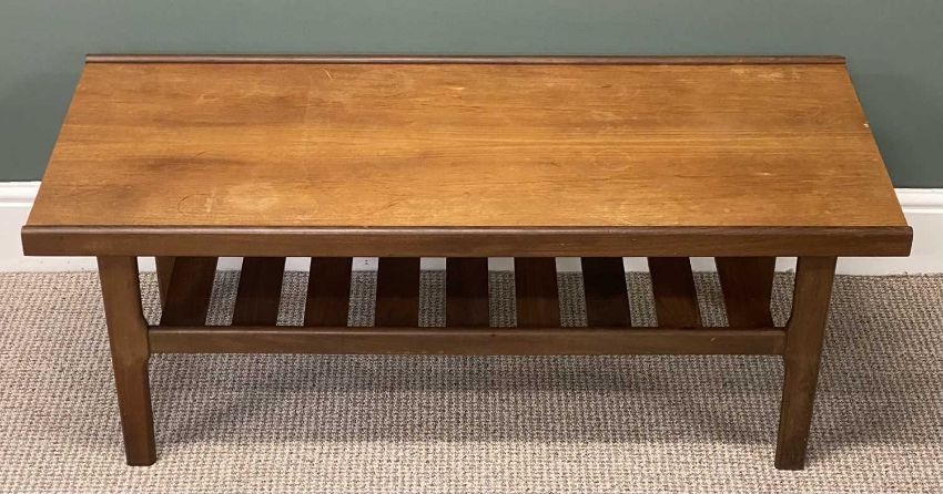 MID-CENTURY TEAK LONG JOHN COFFEE TABLE, with slatted undertier shelf, 45 (h) x 111 (w) x 45.5cms (d)Provenance: private collection Conwy