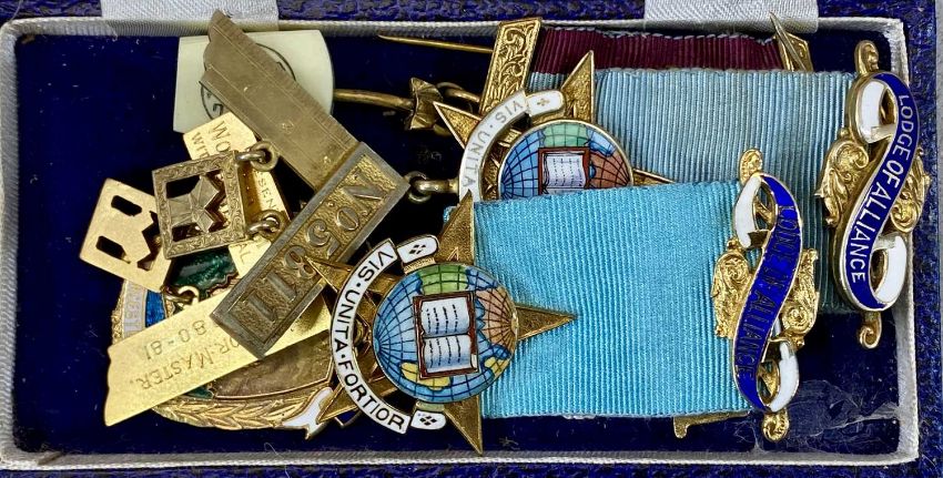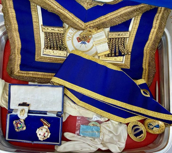 ASSORTMENT OF MASONIC REGALIA, including aprons and medals, contained in two briefcasesProvenance: deceased estate Conwy