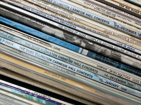 MUSIC CLUB HOUSE: EXTENSIVE SELECTION OF DUKE ELLINGTON LP VINYL RECORDS, including box sets: Duke Ellington 'Souvenirs', Reprise 64021, The Ellington Era 1927-1940, Volume Two, CBS 66302, two Blue-Disc recordings: The Unheard and Seldom Heard Ellington, volume one, T1001 and volume two, T1003, together with a few other artists but approx. 120 Ellington titles and approx. over 125 LPs in total (qty.)Provenance: private collection AngleseyComments: due to the size of the collection we cannot provide a detailed list of recordings or condition report, inspection advised