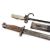 MILITARY CLUB HOUSE: P.1886 FRENCH BAYONET LEBEL , nickel silver hilt, hooked steel quillon indistinctly numbered, steel muzzle ring & button catch, reduced 39.5cms cruciform blade, 51.5cms overall; with GEORGE V WW1 P.1907 LEE-ENFIELD SMLE BAYONET, ricasso stamped Sanderson with crowned GR and inspection marks & broad arrow, dated 8.16, steel muzzle ring, fullered blade 43.3cm, overall 55.5cms, leather & steel mounted scabbard (2)Provenance: private collection ChesterComments: lebel tip bent, nicks and pitting, SMLE edge with multiple nicks, inspection advised.