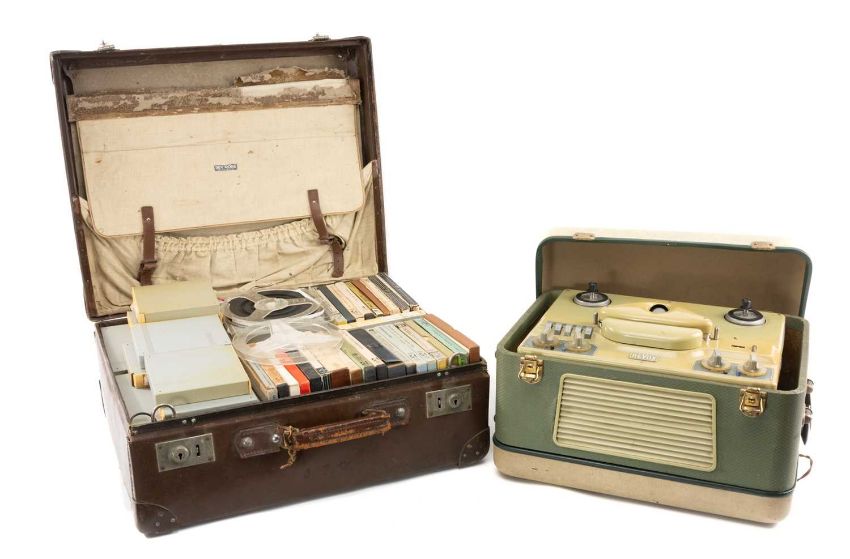 MUSIC CLUB HOUSE: 1960'S REVOX D36 STEREO REEL-TO-REEL RECORDER/PLAYER, made in Switzerland, together with approx. 23 pre-recorded tapes inc. RCA Victor FTC-2170 The Great moments from Die Fledermaus, Angel Stereo ZS 36147 Maria Callas in Paris etc., plus a selection of home recorded tapes, contained Rev-Robe canvas lined suitcaseProvenance: private collection Vale of GlamorganComments: untested, inspection advised, no further condition report available