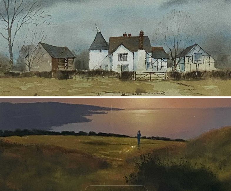 TIM NASH watercolour - entitled verso 'Oast Houses at Wallers Green', signed lower left, 28 x 48cms; and TONY GARNER (1944-2022) watercolour - coastal sunset, 23 x 34cms (2)Provenance: private collection DenbighshireComments: framed and glazed