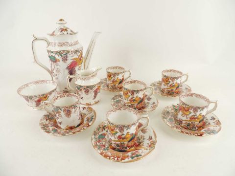 ROYAL CROWN DERBY OLDE AVESBURY PATTERN COFFEE SERVICE, comprising six cups and saucers, lidded coffee pot, cream jug and sugar basin (15)Provenance: private collection East Cheshire