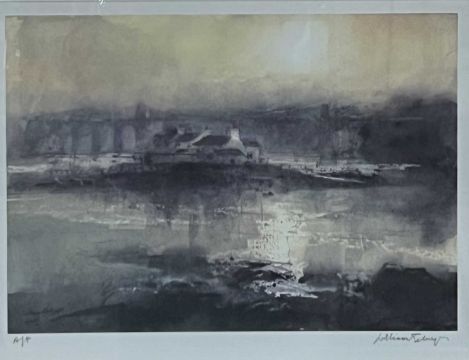 WILLIAM SELWYN, (b. 1933) artist's proof print - 'Ynys Gorad Goch with Menai Suspension Bridge in background', signed in pencil, 30cm x 41cm; also LAURA HART, watercolour, titled verso 'Gwynant Valley', 26.5cm x 37cm. Comments: Selwyn framed and glazed. Hart framedProvenance: private collection Gwynedd