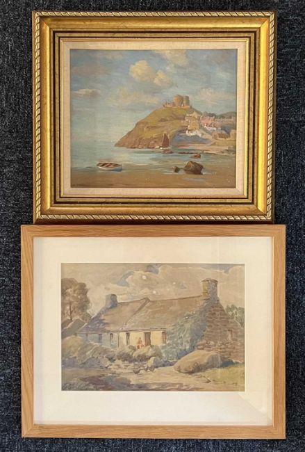 W CADWALADER, CRICCIETH CASTLE, signed oil on board, 23cm x 28cm, also Y MAES COTTAGE, watercolour by the same hand, 22cm x 31cm (2)Provenance: private collection West Yorkshire