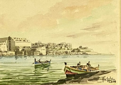 THREE CONTINENTAL PAINTINGS: J. MILLER oil on canvas - boats ashore, signed lower right, 24.5 x 34.5cms; B. NOLCINI watercolour - entitled 'View of the Naples Bay', signed lower left, 17.5 x 25cms; and UNKNOWN colour print - 'Valletta from Senglea', indistinctly signed lower right, dated 1959, 13.5 x 19cms (3)Provenance: private collection ConwyComments: oil framed, watercolour and print framed and glazed