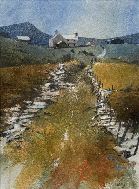 ROB PIERCY (b. 1946) watercolour - path leading up to mountainous Welsh farmhouse, signed lower right, 34 x 25cmsProvenance: private collection GwyneddComments: framed and glazed