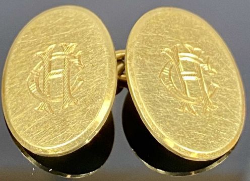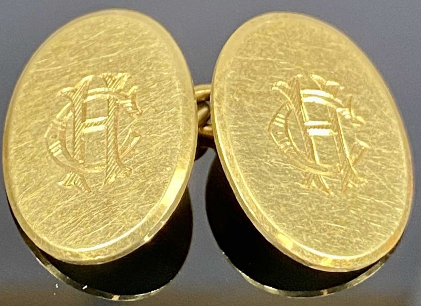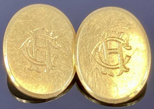 PAIR OF 18CT GOLD OVAL CUFFLINKS, monogrammed, 12.8gProvenance: private collection Denbighshire