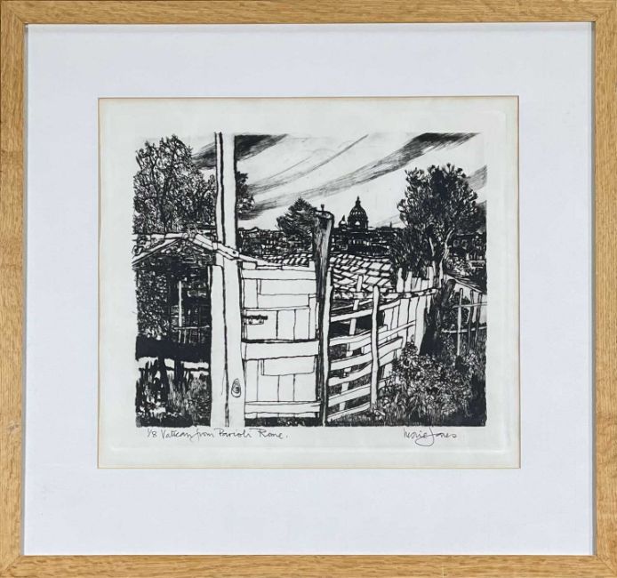 ‡ LESLIE JONES (Welsh 20th Century) limited edition (1/8) etching - entitled 'Vatican from Parioli, Rome', signed in pencil, 28 x 34cmsProvenance: private collection ConwyComments: framed and glazed