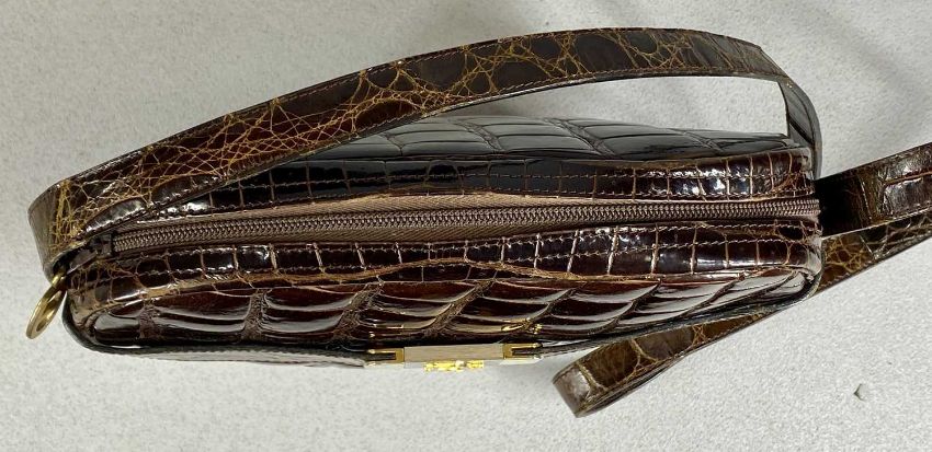 CHRISTIAN DIOR VINTAGE BROWN CROCODILE SKIN SHOULDER BAG, with gilt metal logo, approx. 22 x 23cms, with manufacturer's dust bagProvenance: private collection Denbighshire