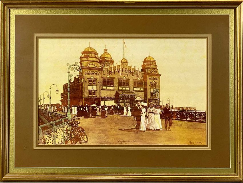 VARIOUS ARTISTS / MEDIUMS: EVAN ROBERTS oil on board - entitled verso 'Ger Arfordir Arfon', signed and dated '69 lower right, 45 x 60cms; STEVE JONES colour print - 'Colwyn Bay Pier, 1910', 26 x 41cms; and ARTHUR NETHERWOOD black and white print - Colwyn Bay Promenade, signed lower left in pencil, 25 x 37cms (3)Provenance: private collection ShropshireComments: oil framed, prints framed and glazed