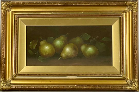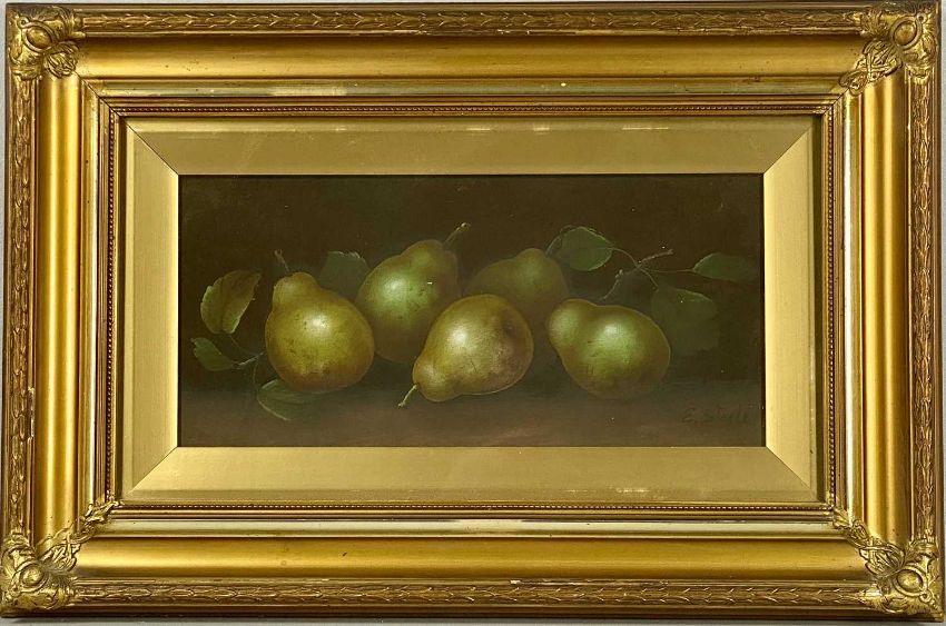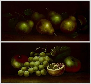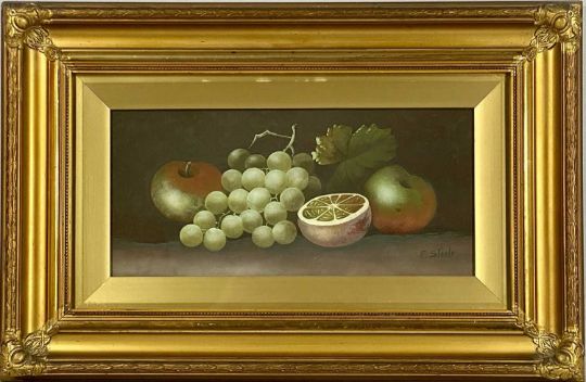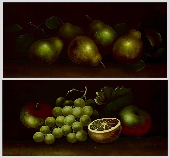 ‡ E. STEELE two oils on card - still lifes of fruit, signed lower right, 16 x 35cmsProvenance: private collection ConwyComments: both framed and glazed