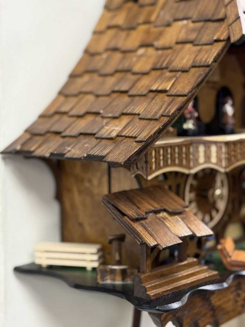 ENGSTLER GERMAN CUCKOO CLOCK, with musical movement, three pinecone weights, 34 (h) x 30cms (w)Provenance: private collection Gwynedd