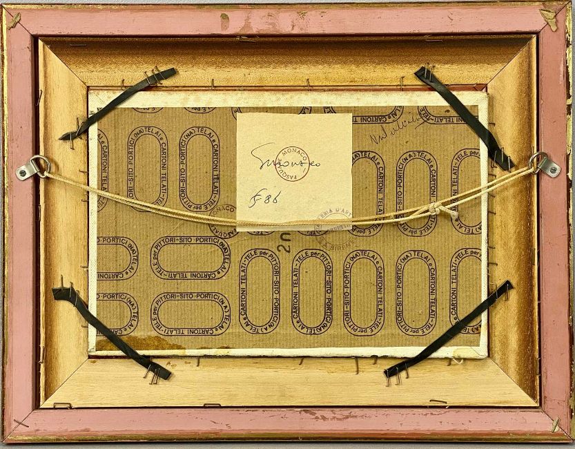 ‡ PASQUALE MONACO (Italian, b. 1948) oil on board - continental street scene with church tower, signed lower right, 18 x 28cmsProvenance: private collection ShropshireComments: framed and glazed