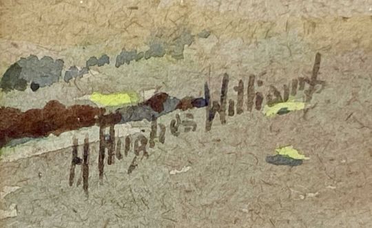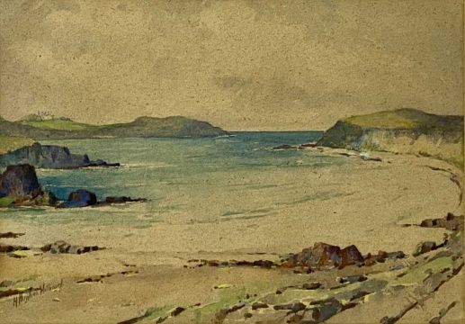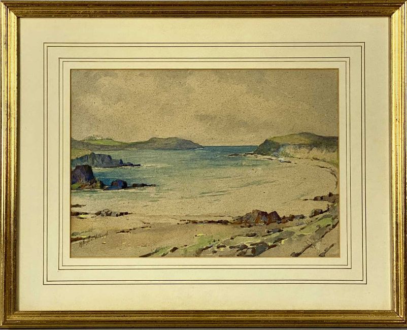 ‡ HARRY HUGHES WILLIAMS (Welsh, 1892-1953) watercolour - entitled verso 'A Peaceful Anglesey Coast, Wylfa Point, By the Lake', signed lower left, 23.5 x 34cmsProvenance: private collection FlintshireComments: framed and glazed