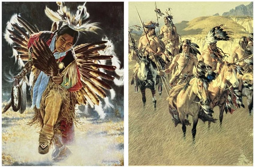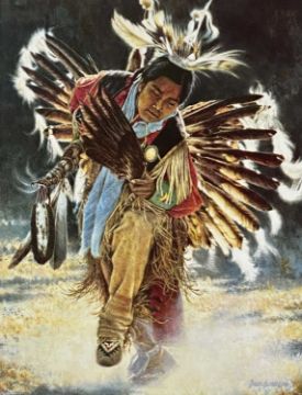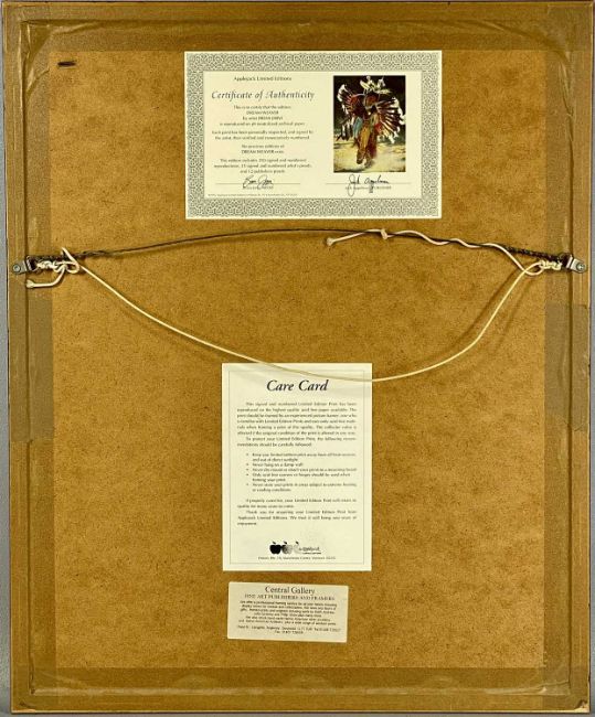 BRIAN JARVI (b. 1956) limited edition (23/350) colour print - entitled 'Dream Weaver', signed and numbered in pencil, 40 x 30cms; and McCARTHY colour print - Native American Warriors, 36 x 55cms (2)Provenance: private collection Ynys MônComments: both framed and glazed
