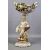 CONTINENTAL PORCELAIN CENTREPIECE, in the manner of Meissen, figural column in the form of a young boy on a circular base, supporting an oval two-handled basket, pierced and encrusted with flowers, blue crossed swords mark to base, 39cms (h)Provenance: private collection Conwy
