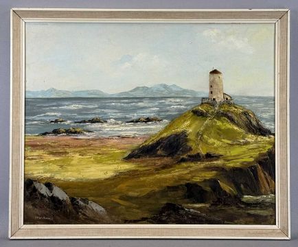 ‡ J. P. WILLIAMS oil on board - Llanddwyn Lighthouse, Anglesey, signed lower left, 47 x 59cmsProvenance: private collection Ynys MônComments: framed
