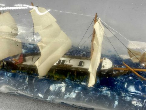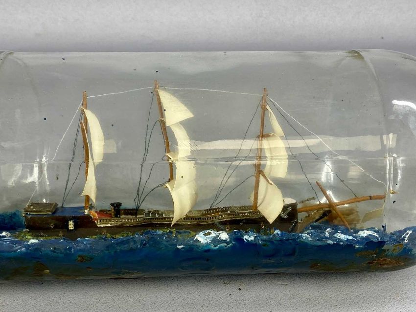 THREE-MASTED SHIP IN A BOTTLE, 50cms overallProvenance: private collection Denbighshire