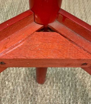 VICO MAGISTRETTI 'CARIMATE' STYLE CHAIR, woven rush seat, solid wood frame, gloss red finish, 75 (h) x 58cms (w)Provenance: consigned via West WalesComments: no makers label, paintwork rubbed/chipped, rush seat good, inspection advised