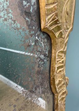 GEORGE I GILTWOOD & GESSO PIER MIRROR, style of John Belchier, shaped single bevelled plate, within shaped carved frame with scrolled pediment and acanthus crest, swag draped sides, acanthus scrolled base, 162 x 61cmsProvenance: Olympia Art Fair; private collection Vale of Glamorgan.Notes: See Christopher Gilbert, 'Marked London Furniture 1700-1840', Furniture History Society, p.17, 'John Belchier , ... is first recorded at The Sun, St Paul's Yard in 1717: until his death in 1753. His most significant documented commission was for John Meller, Queen Anne's Master of Chancery, at Erddig Castle, near Wrexham, where carved and gilt gesso tables, a bureau cabinet, pier glasses and sconces were supplied between 1722 and 1726 and remain in situ. Significantly, it is Belchier's bureau cabinets that are most frequently labelled, and due to his ability to work with glass, all have mirrored doors. His work at Erddig is discussed by Martin Drury, 'Early Eighteenth Century Furniture at Erddig', Apollo, July 1978, pp. 46-48, in which many of the pier-mirrors are illustrated.