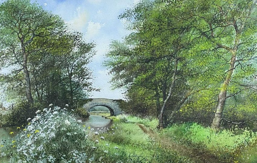 ‡ PAUL WESTON oil on card - untitled landscape, wooded area and stone bridge, signed, 34 x 53cmsProvenance: private collection TorfaenComments: framed, glazed