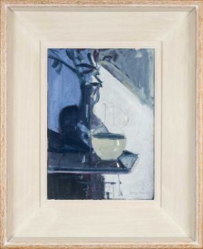 ‡ BRIAN BALLARD (b. 1943) oil on canvas - still life of irises in glass, signed, further signed, titled, and dated 1998 on label verso, 34 x 25cmsProvenance: private collection MonmouthshireComments: box framed and glazed, ready to hang
