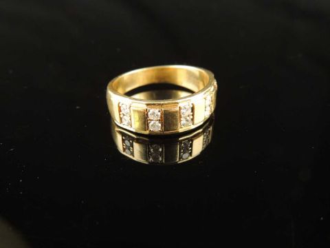 DIAMOND SET WEDDING RING in unmarked yellow gold, testing as 10ct, set with five pairs of brilliant-cut diamonds, size V, 8gProvenance: private collection Cheshire