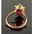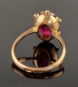 SOVIET REPUBLIC RING & MATCHING EARRINGS, set with untested red gemstones, oval-cut, the ring approx. 13 x 10mms, marked '583', size R, approx. 5.6g, the earrings set with stones approx. 10 x 8mms, marked '583', 5.2g (3)Provenance: private collection Merseyside