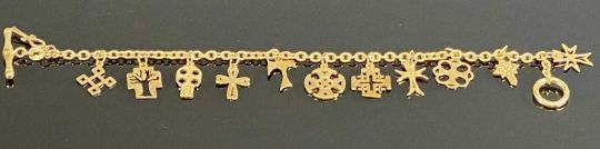 ASSORTED GOLD TONE JEWELLERY, including an Egyptian charm bracelet, another charm bracelet, various earringsProvenance: deceased estate Conwy