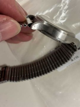 INTERNATIONAL WATCH CO. MILITARY ISSUE MK XI PILOT'S WRISTWATCH, circa 1952, black 28mms dial, signed and with 'Pheon' and encircled T, centre sweep seconds, manual-winding crown, back cover marked with government issue 'Pheon' and 6B/346 and 1385/52, 35mms (diam.) case, on a later stainless-steel braceletProvenance: this watch was given to the vendor's father whilst serving in the Royal Navy."My father spotted a plane coming down and alerted the captain and crew that were still active on deck. The ship was immediately turned around to locate any survivors. The pilot was spotted and was pulled aboard, he was badly shaken and with cuts and bruises, but very much alive. After medical attention he was grateful to the captain for his rescue effort, to which the captain replied: "I'll get the lad that you can thank" (which was the vendor's father). The captain explained that the lad had spotted the pilot and his plane whilst on duty and raised the alarm, and got procedures moving for the rescue. The captain introduced the lad to the pilot, and the captain followed by insisting it was the lad that the pilot owed his life to, as the vessel would have probably sailed by. Before disembarking the ship, the pilot offered his gratitude by presenting the lad with his watch.''Comments: watch currently ticking, minor scuffs and scratches.