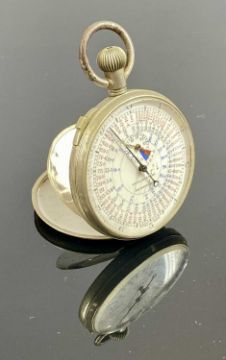 EXCELSIOR PARK PATENT NICKEL CASED ARTILLERY STOPWATCH, enamelled white dial, marked off in numerous increments and with coloured scales, movement no. 3364, and with spare parts compartment, 55mms (diam.)Provenance: deceased estate Conwy