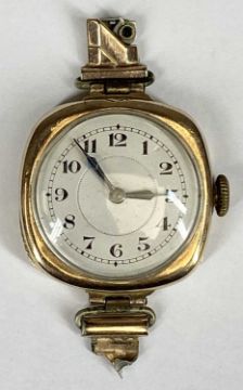 GEORGE V ROSE GOLD LADIES' WRISTWATCH, cushion case, 25mms (w), 17g grossProvenance: private collection Conwy