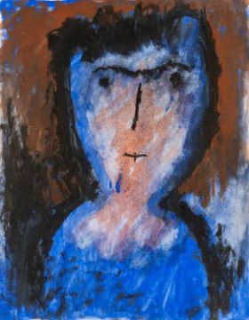 ‡ JOSEF HERMAN mixed media on paper - portrait of a newspaper delivery boy, from the artist's 'Children of the North End Road' series, circa 1984 25 x 20cmsProvenance: private collection London, gifted to the vendor by Nini HermanComments: framed and glazed