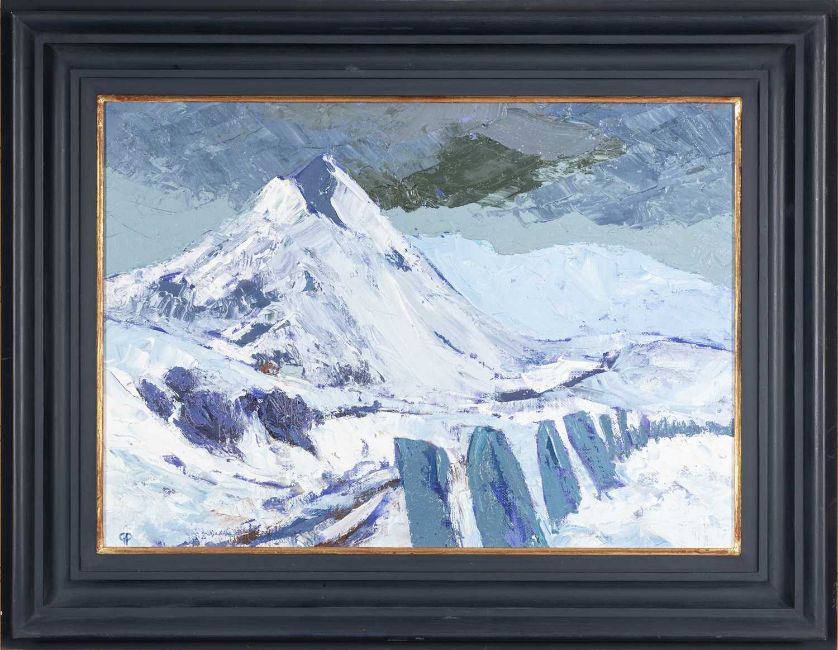 ‡ GWILYM PRICHARD oil on canvas - entitled verso 'Cnicht and Snow' on Martin Tinney Gallery label, signed with initials, fully signed and dated 2005 verso, 31 x 44cmsProvenance: private collection Vale of GlamorganComments: framed