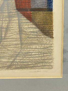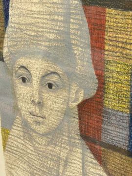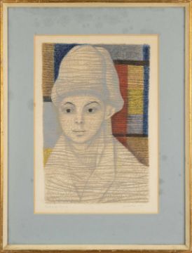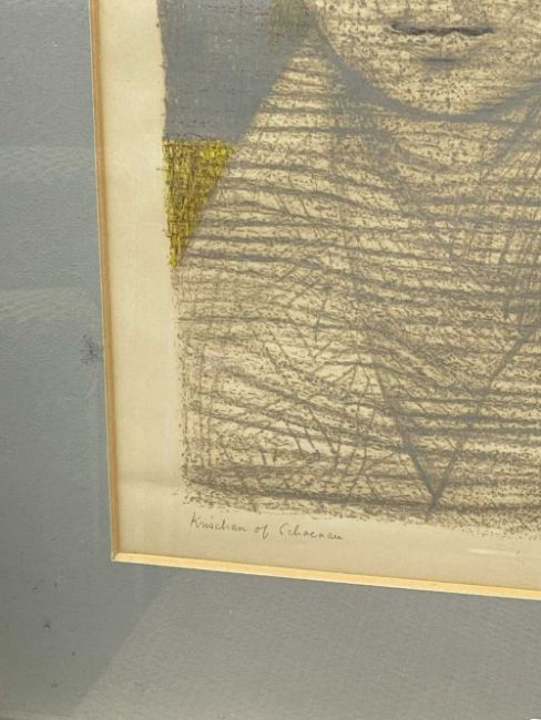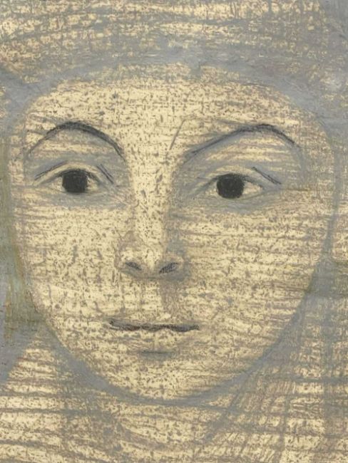 ‡ BRENDA CHAMBERLAIN pastel on paper - entitled, 'Krischan of Schoenau', signed and dated 1955, 43 x 29cmsProvenance: purchased 1963 Brenda Chamberlain exhibition, private collection South YorkshireComments: framed, glazed Condition Report:some foxing present