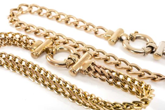 TWO SIMILAR 9CT GOLD BRACELETS, curb link, the longest being 20cms, 16.5gms (2)Provenance: private collection Vale of GlamorganComments: good overall, viewing recommendedPlease note: this lot located at our Cardiff auction house for viewing. For condition reports please email lotenquirysw@rogersjones.co.ukAll purchased lots in this auction can be transferred to any one of our five offices providing payment terms are met first. Please see terms.P&P available on request (maximum insurance value £2,500) – please contact the office for a quote.