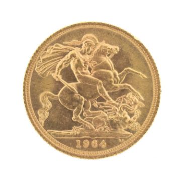 ELIZABETH II GOLD SOVEREIGN, 1964, issued in conjunction with the London Caravan Club, in case of issue, 7.9gProvenance: private collection GwentComment: light surface wear.Please note: this lot located at our Cardiff auction house for viewing. For condition reports please email lotenquirysw@rogersjones.co.ukAll purchased lots in this auction can be transferred to any one of our five offices providing payment terms are met first. Please see terms.P&P available on request (maximum insurance value £2,500) – please contact the office for a quote.
