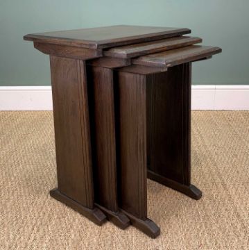 BRYNMAWR ARTS & CRAFTS 'CRICKHOWELL' STAINED OAK NEST OF TABLES, stamped, staining appears to be shade No.119 from the Company’s Shade Card (Dark), as they moved on from a simple clear hard wax finish, 25.9.39Provenance: private collection CarmarthenshireComments: slight fading to uprights, inspection advised
