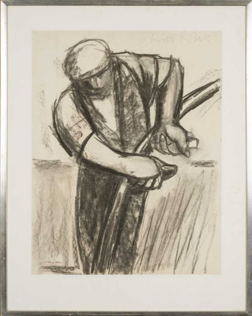 ‡ WILL ROBERTS charcoal on paper - farmer with scythe, signed, 56 x 44cmsProvenance: private collection South YorkshireComments: framed, glazed