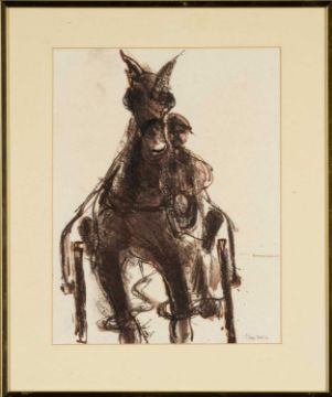 ‡ TOM NASH mixed media on paper - horse & cart rider, entitled verso 'Etude, Cabourg', signed, 23 x 18cmsProvenance: private collection BerkshireComments: framed and glazed