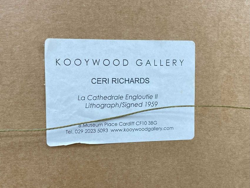 ‡ CERI RICHARDS CBE limited edition (29/50) colour lithograph - entitled verso, 'La Cathedrale Engloutie II' on Kooywood Gallery label, signed and dated 1959, 77 x 50cmsProvenance: private collection Vale of GlamorganComments: framed, glazed