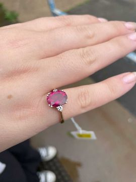 18CT GOLD PRESUMED SPINEL & DIAMOND RING, principal oval cut stone 11 x 9mm, two small diamond shoulder accents, shank stamped '750' gross wt. 5g, ring size O/PProvenance: private collection Vale of GlamorganComments: very good overall, pink stone has small inclusions, colour deep pink with lavendar tones. Stone has not been tested, inspection advised.Note: this item is available to view at our Cardiff Saleroom by appointment up until 5pm, Tuesday 2nd September, viewings in Chester thereafter.