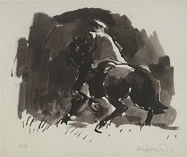 ‡ SIR KYFFIN WILLIAMS RA (1918-2006) artist's proof print - Patagonian horse rider, signed in pencil lower right, 32 x 38cmsProvenance: private collection GwyneddComments: framed and glazed