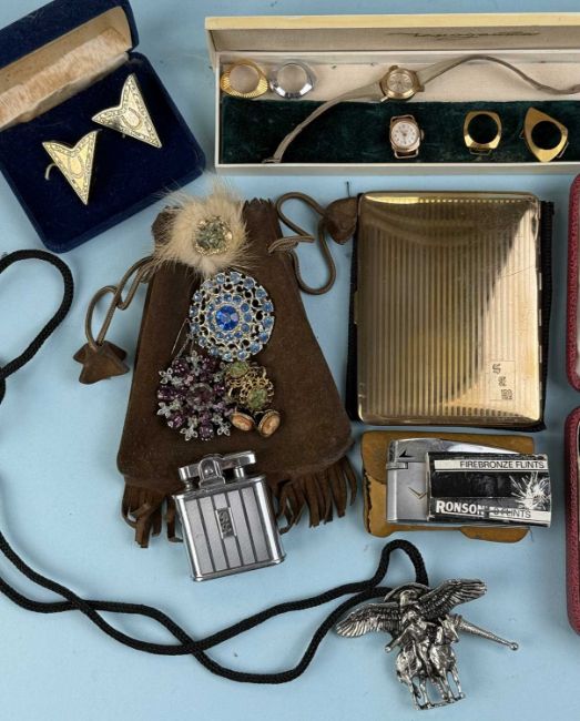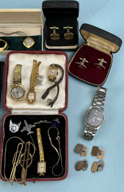 ASSORTMENT OF COSTUME JEWELLERY, gent's Seiko quartz stainless-steel wristwatch, Ronson lighter, various ladies' fashion wristwatches, etc.Provenance: private collection Merseyside