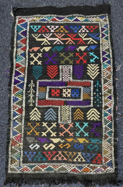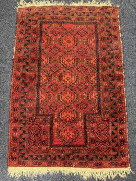 AFGHAN TRADITIONAL RED GROUND PRAYER RUG, 135 x 90cms; also two small flat weave rugs (3)Provenance: private collection Denbighshire